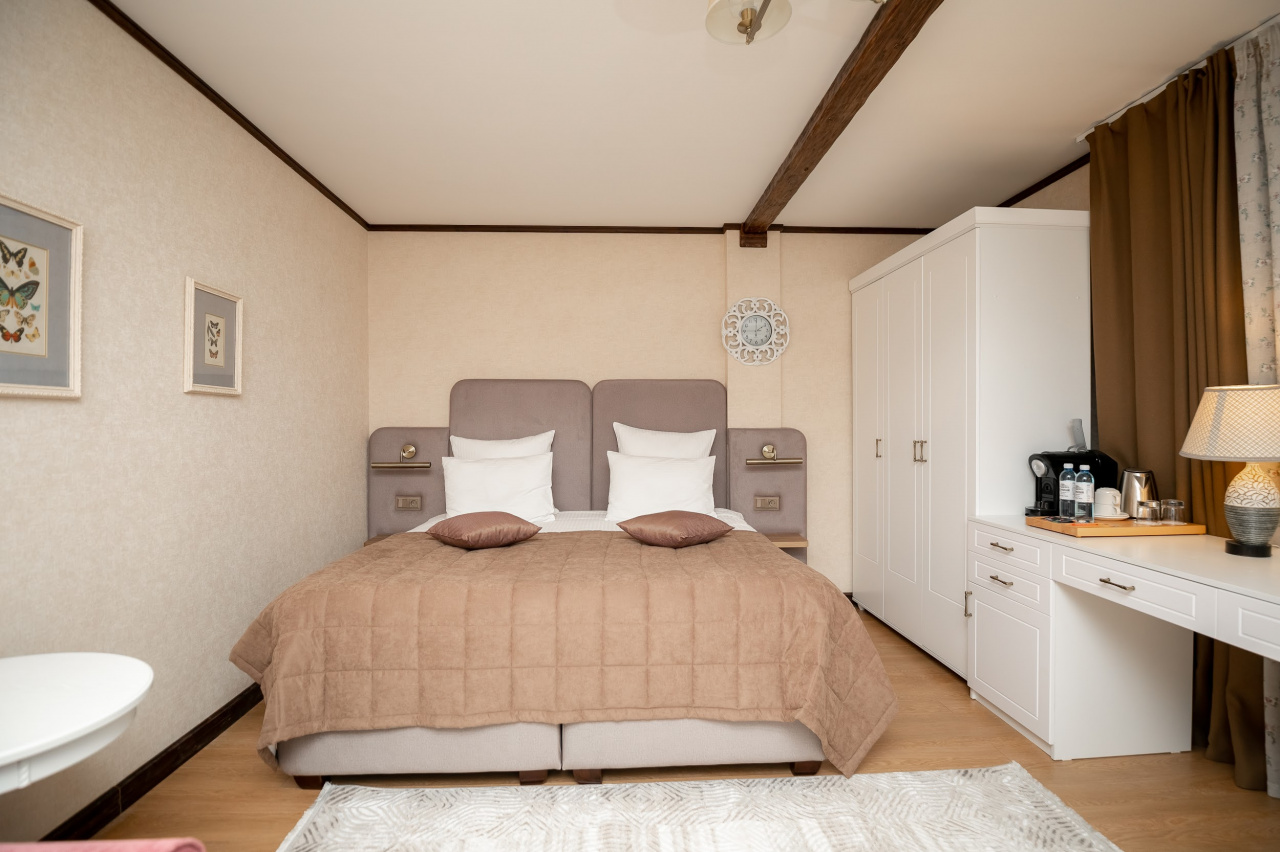 Бронируя онлайн, вы выбираете категорию номера, система бронирует самостоятельно любой доступный номер из этой категории, узнать номер комнаты вы сможете при заселении, поэтому фото номера в модуле бронирования могут отличаться от реального вида номера. Благодарим за понимание!