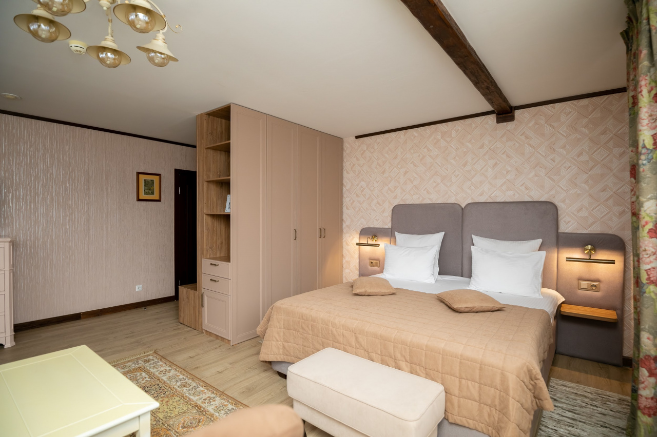 Бронируя онлайн, вы выбираете категорию номера, система бронирует самостоятельно любой доступный номер из этой категории, узнать номер комнаты вы сможете при заселении, поэтому фото номера в модуле бронирования могут отличаться от реального вида номера. Благодарим за понимание!